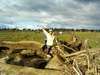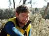 The beginning of much rain. Dan tyring to find some firm ground. |
