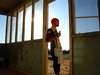 Dan watching the sunrise outside the shearing quaters, Wirryilka station. |
