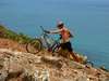 Dan, pushing his bike up the Bloomfield Track, Daintree National Park. |