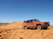 This initial stage of my journey involved not only driving to the Simpson Desert, but also across it so that I could bury my food drops. By the time we reached Tiboburra the rain came and caused delays and car problems in the mud. My 4WD's cooling system wasn't working properly and the car was overheating from the steep sand dunes.
