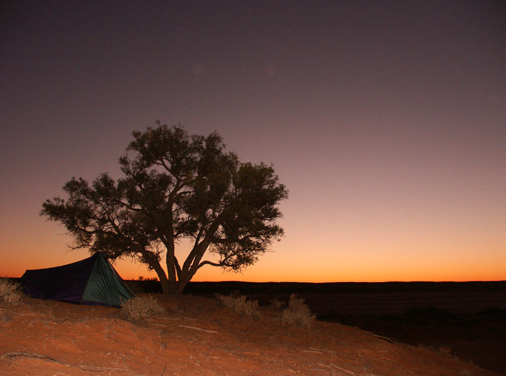 Sunset, camped overlooking a salt lake.